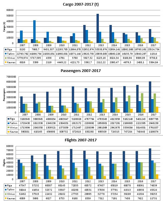 Riia lennujaama veebilehel on ka koondstatistika kolme Balti riigi lennujaamade kohta: