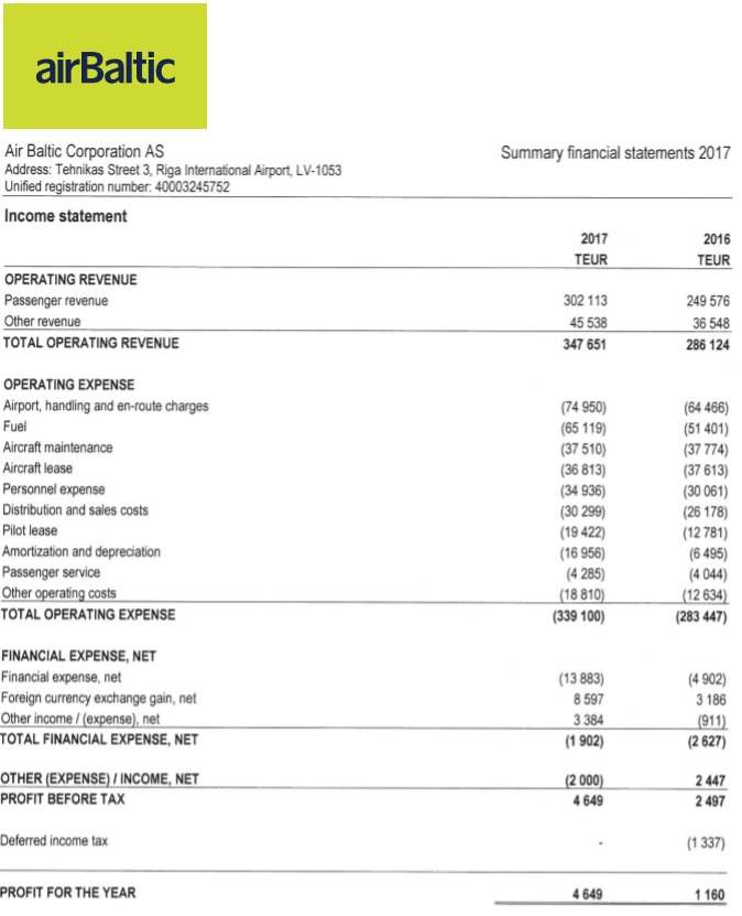 sustainable basis. This could happen because Air Baltic's earnings