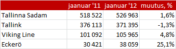 Nagu näha läks konkurentidel veidi paremini kui Tallinkil. Lisainfoks, et Tallinki Eesti-Soome liini reisijate arv kahanes 0,4% ja Eesti-Rootsi liini reisijate arv 6,5%.