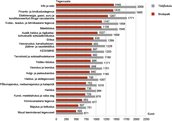 Keskmine brutokuupalk oli 2012. aastal 887 eurot ja brutotunnipalk 5,34 eurot, teatab Statistikaamet. 2011. aastaga võrreldes tõusis keskmine brutokuupalk 5,7% ja brutotunnipalk 6,0%. Reaalpalk, milles tarbijahinnaindeksi muutuse mõju on arvesse võetud, tõusis 2012. aastal 1,7%.