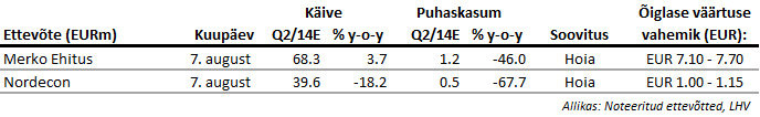 Meie ootused Merko Ehituse ja Nordeconi tulemustele on järgmised: