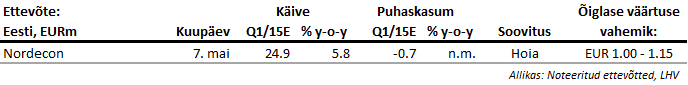 Merko I kvartali tulemustest kirjutasime juba täna hommikuses Baltic Morning Newsis (link) ning põhjalikuma ülevaate tulemustest avaldame juba homme. Rääkides meie ootustest, siis üldise esimese kvartali tulemuste eelvaate avaldasime Balti analüüside all 14. aprillil (link). Meie ootused Nordeconi I kvartali tulemustele on järgmised: