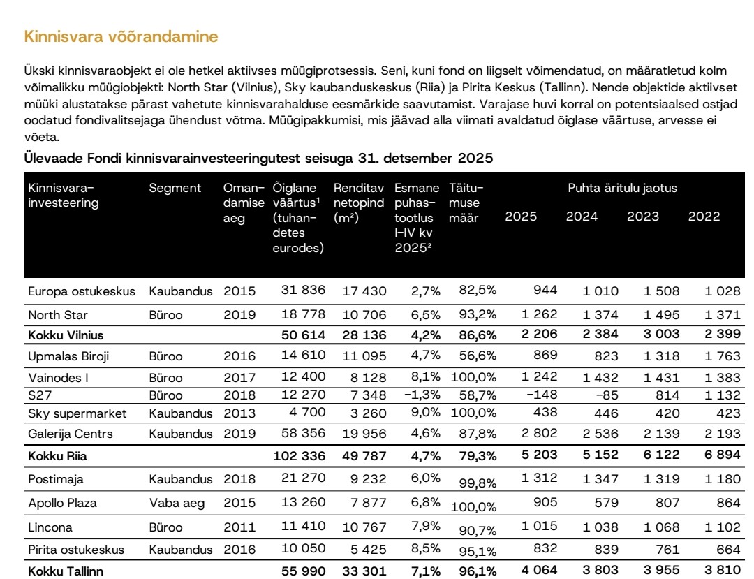 12,7m jäi eesmärgist puudu. Leedukad ilmselt märkisid suurelt. Saab siis näha, kas läheb Pirita ostukeskus müüki, nagu on mõnel korral vihjatud. Võimalikke müügikandidaate on nad aruandes kolm tükki välja toonud: