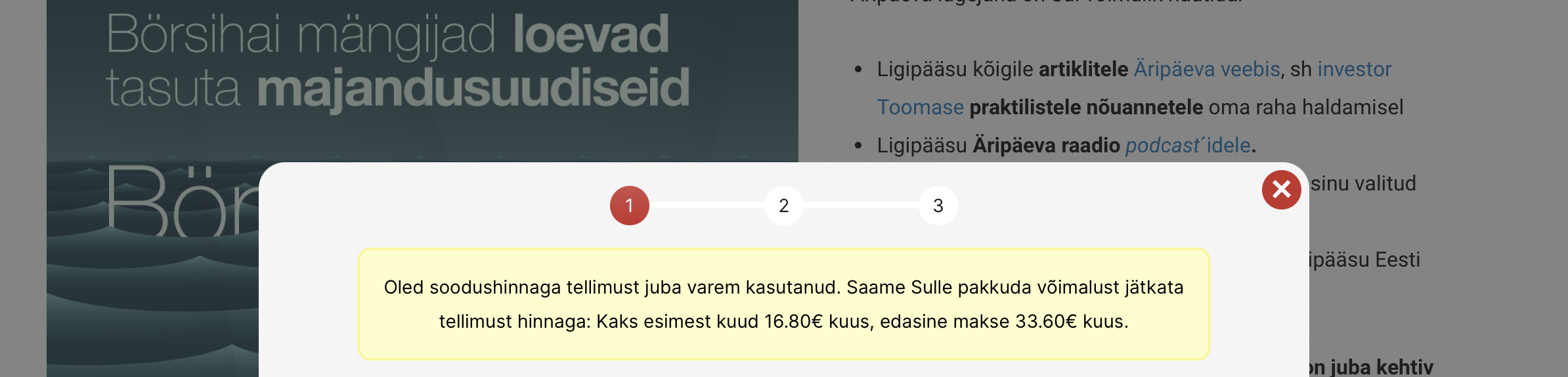 Äripäeva lugejaks registreerudes viitab, et oleks justkui mingit soodustust kasutanud ja nüüd peab maksma. Väga nagu ei mäleta, et see oleks viimase aasta jooksul juhtunud