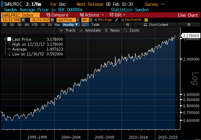 Rootsi majade keskmine hind kerkis detsembris rekordilise 3,178 miljoni kroonini, märkides 9,6% kasvu võrreldes mullusega