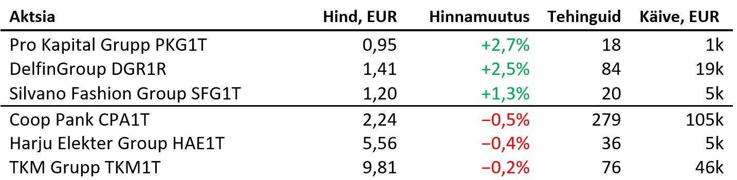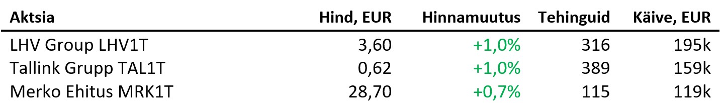 Balti põhinimekirjas tehti kolmapäeval 1598 tehingut ning käive oli 770 tuhat eurot. Vilniuse börs oli eile püha tõttu suletud.