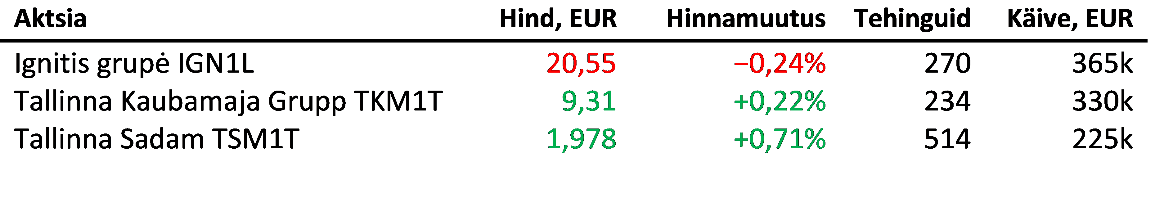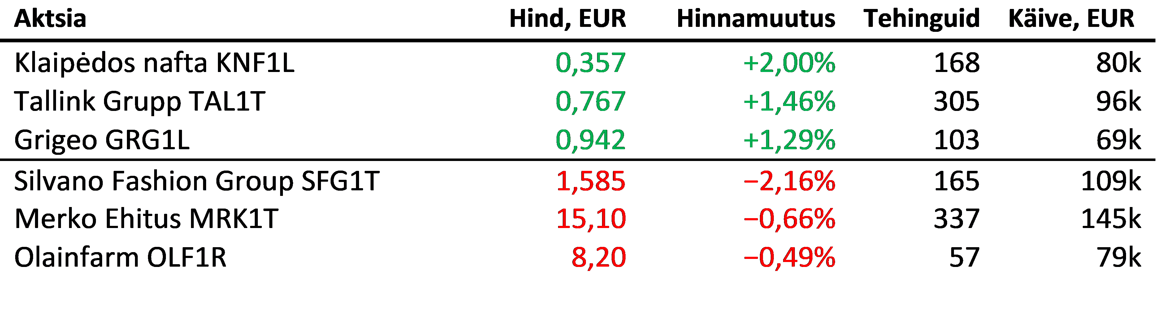 Enimkaubeldud aktsiad olid: