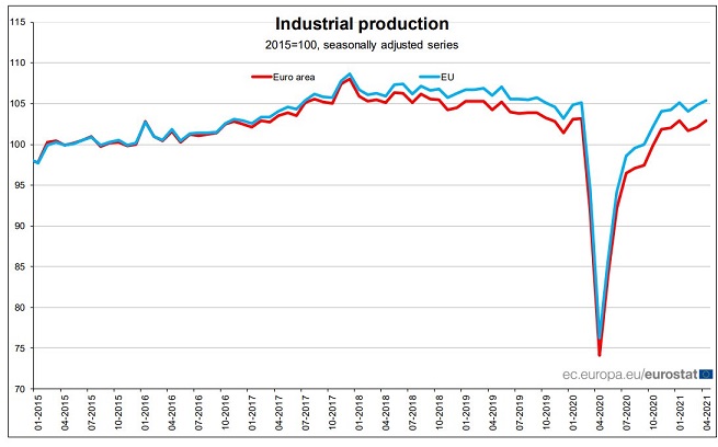 Euroala tööstustoodang osutus aprilis oodatust veidi tugevamaks seda lisaks kõrgemaks revideeritud märtsi tulemuse pealt