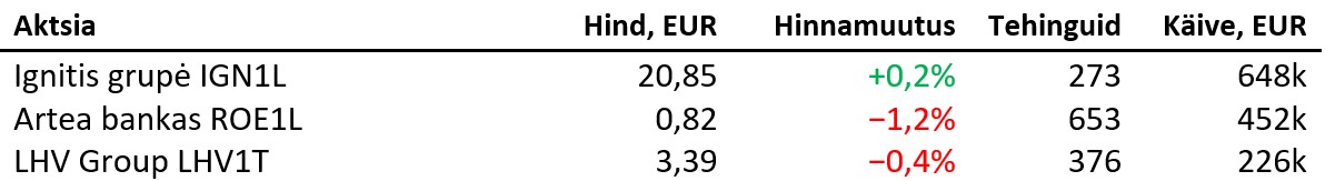 Aasia aktsiaturud kauplesid öösel positiivses meeleolus, kui Hang Seng kerkis 2,0%, Shangai Composite 1,2%, Kospi 2,7%, Nikkei 1,8% ja ASX200 1,0%. Brenti toornafta kallines 0,1% 62,4 dollarile, Bitcoin kerkis 0,4% 112 493 dollarile ning Ethereum edenes 2,8%, kaubeldes 4117 dollaril. EUR/USD tugevnes 0,2% 1,1637 dollarile ja unts kulda maksis 4198 dollarit (+1,2%).