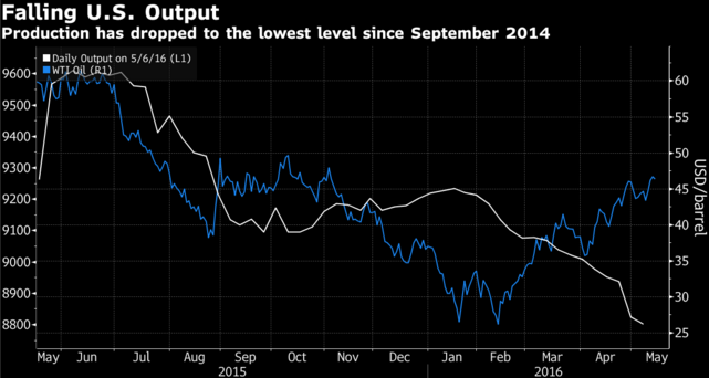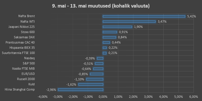 Möödunud nädala üks suurematest tõusjatest oli nafta, kui IEA ning EIA tõstsid tuleviku nõudluse prognoose ning ühtlasi ennustasid USA ja teiste mitte-OPEC tootjate mahtude vähenemise jätkumist. Möödunud nädalal taotlesid pankrotikaitset 3 USA naftatootmise ettevõtet. Ühtlasi on naftaturgu mõjutamas hiljutine pakkumise vähenemine Kanadas, kus eelmisel nädalal alustati pärast metsatulekahjudest tingitud ajutist seisakut taas tootmist. Nigeerias on mässuliste tõttu tootmismaht langenud 600 000 barreli võrra päevas ehk viimase 20 aasta madalaimale tasemele.