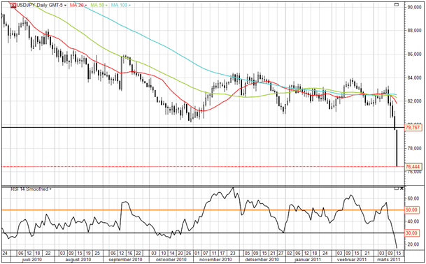 Jaapani jeen on hetkeolukorrast tuge saamas: USDJPY kukkus läbi 80,19 taseme, mis oli eelmise aasta novembris tehtud enam kui 16 aasta põhjaks. Järgmine siht kõikide aegade põhi 79,74.