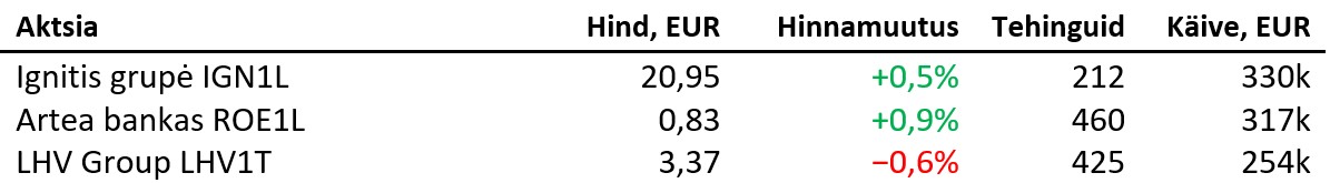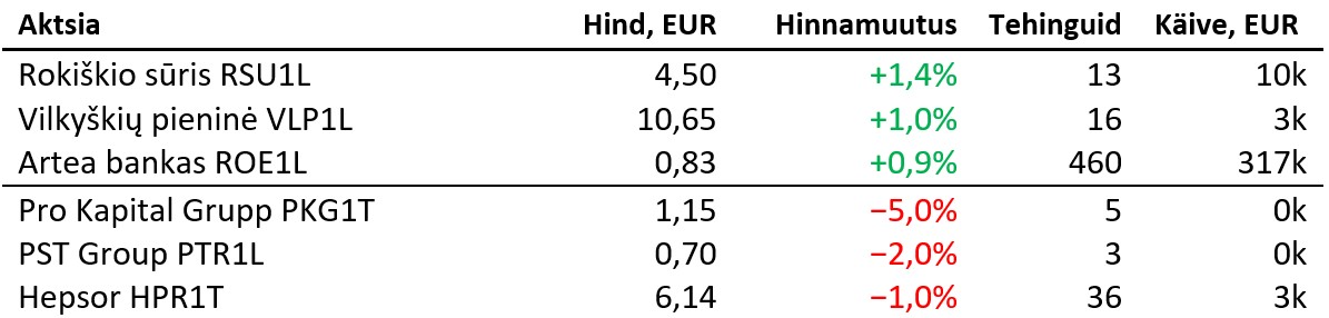 Tarbijasektori poolel valmistasid pettumuse kindlustusfirma Progressive (-5,8%) ja tervishoiuettevõte Abbott (-2,4%), kelle tulemused jäid alla ootuste. Üldiselt peegeldas aktsiaturgude liikumine siiski optimismi ning turuosaliste fookus on nüüd selgelt liikunud Föderaalreservi oktoobrikuisele intressiotsusele.
