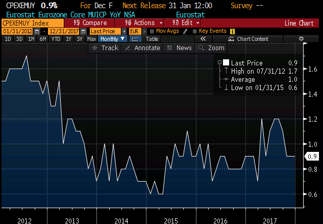 Euroala alusinflatsiooniks fikseeriti detsembris 0,9%, püsides sellel tasemel viimased kolm kuud