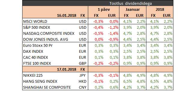 Ühendriikides näitas New Yorki töötleva tööstuse küsitlus jaanuarikuu esimese makronäitajana, et aktiivsus on püsimas võrdlemisi kõrgel tasemele. Üldine ärikliima indeks alanes 19,6 punktilt 17,7 punktile, jäädes alla analüütikute 19,0 ootusele, kuid selles võis rolli mängida külmem ning lumisem talveilm kuu alguses. Ettevaatava indikaatorina paranes kuue kuu väljavaade 46,3 punkti pealt 48,6 punktile ning samuti liikus kõrgemale ettevõtete planeeritud kapitalikulutuste indeks (34,1 punkti pealt 34,8 punktile).