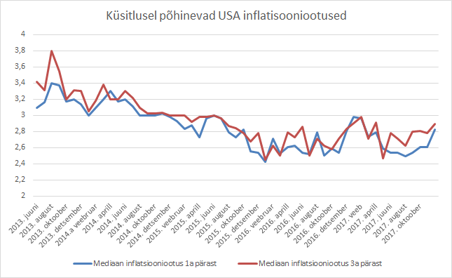 NY FEDi küsitluse kohaselt kerkis tarbijate ühe aasta inflatsiooni mediaanootus detsembris 2,61% pealt 2,82%le ning järgmise kolme aasta oma 2,78% pealt 2,89%le, mis on kõrgeimad tasemed vastavalt veebruarist ning aprillist. See on üks paljudest näitajatest, mida keskpank kasutab rahapoliitiliste otsuste langetamisel ning toetab teesi, et intressimäärade tõus võiks tänavu jätkuda.