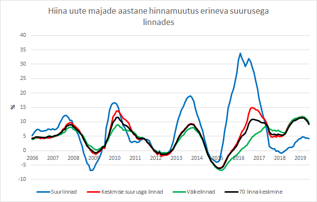 Hiinas jätkus augustis uute majade keskmine hinnakasvu aeglustumine, kui 70s linnas keskmiselt nõrgenes kasvutempo 10,1% pealt 9,1%le osalt kuna valitsus on endiselt spekulatiivset nõudlust erinevate meetmetega ohjamas.