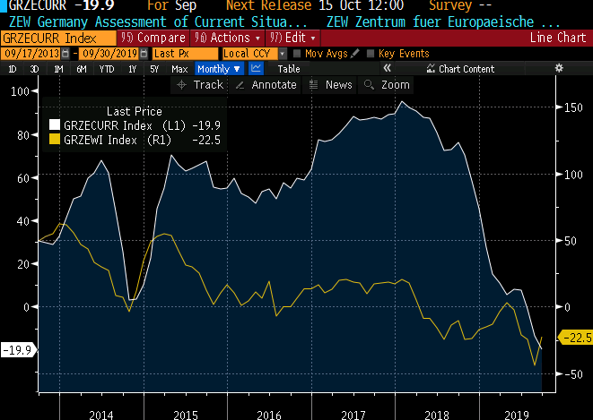 German ZEW Survey – Current Situation Sep -19.9 (est -15.0; prev -13.5)