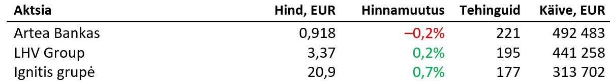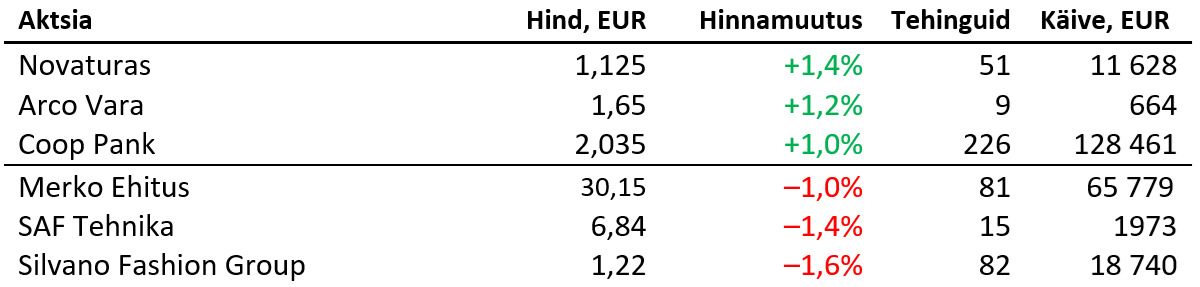 Täna langetavad intressimäära otsuse Rootsi, Norra, Euroopa ja Inglise keskpank, kellest vaid viimane peaks tooma määra 25 baaspunkti allapoole 3,75% peale (Rootsis vastavalt 1,75%, Norras 4,0% ja euroalal 2,0%). Ühendriikides hoitakse silma peal novembri inflatsioonil.