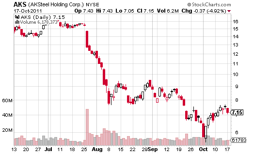 disadvantaged steel producer should diminish, removing one of the overhangs on the stock. Although AKS faces the same weak supply- demand fundamentals in flat steel as X, we believe that 2H earnings expectations for AKS are more realistic and are priced in.
