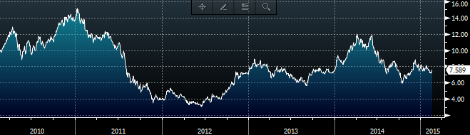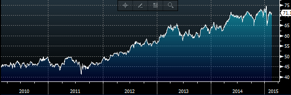 Other news: TTPH +12.3% (attributed to LA Times report on 'superbug' CRE that has infected 2 residents of California), EXEL +8.1% (FDA grants EXEL and Genentech's Cobimetinib Priority Review for use in combination with Zelboraf in advanced melanoma), CAPN +7.9% (cont strength), CYTX +5.1% (cont strength), FL +1.9% (approves new $1 billion share repurchase program, a 67% increase; Approves $220 million capital expenditure program for 2015; also increases quarterly dividend to $0.25 from $0.22/share), NBG +1.3% (cont vol with Greece/Eu talks), MNKD +1.1% (following late spike)