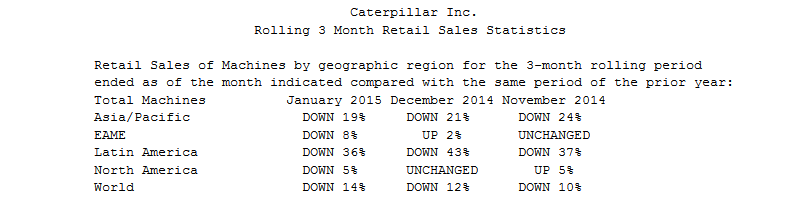 Caterpillari masinate müügi langustempo kiirenes jaanuaris -12% pealt -14% peale Põhja-Ameerika ja EAME arvelt