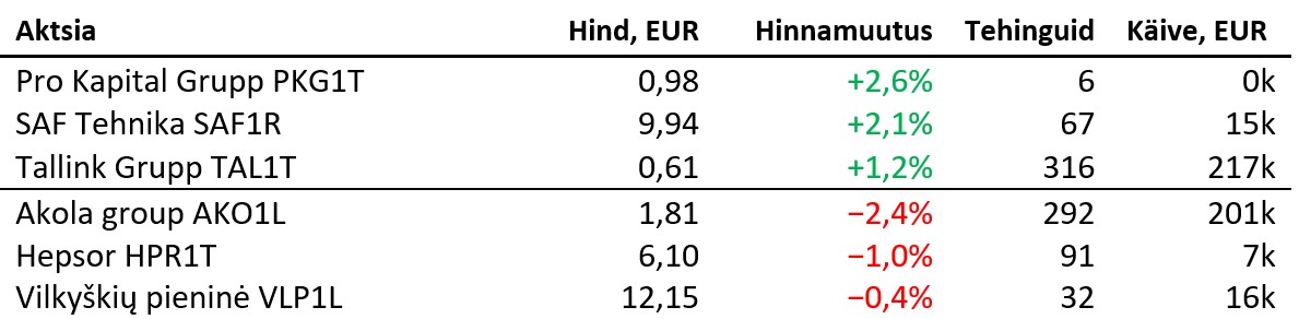 Suuremad tõusjad ja langejad olid: