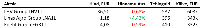 EGR1T tehingute seas oli üks plokktehing (EUR 4,07 x 14 954)