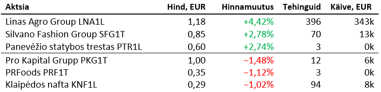 Balti põhinimekirjas tehti kolmapäeval 4039 tehingut ning käive oli 2,300 miljonit eurot, millest Tallinna börsi käive moodustas 1,512 miljonit eurot ning Vilniuse börsi käive 779 tuhat eurot. Tehinguid tehti vastavalt 2628 ning 1365.