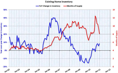 Calculated Risk toob välja, et kuigi olemasolevate majade müük kasvas detsembris 12.3%, valmistab jätkuvalt muret varude kasv. Sesoonsest efektist tingituna on varud madalamad detsembris ja jaanuaris. National Association of Realtors poolt avaldatav kuine varude maht kasutab sesoonselt korrigeeritud müüki, kuid sesoonselt korrigeerimata varusid. Seega viib sesoonsusest tingitud varude vähenemine detsembris ja jaanuaris ka kuise varude mahu madalamale. NRA andmetel vähenes majade varu võrreldes novembriga 4.2% ehk 3.56 miljoni majani, mis praeguse müügitempo juures tähendaks 8.1 kuu varu. Vaadates aga võrdlust eelmise aasta sama ajaga, siis tõusid varud detsembris 8.4%.