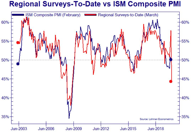Philadeplhia FEDi töötleva tööstuse aktiivsusindeks kukkus märtsis 49,4 punkti -12,7 punktile, märkides indeksi suurimat ühe kuu langust. Arvestades ka eelnevalt avaldatud New Yorgi küsitlust, siis võib üleriigiline näitaja nende baasil langeda veebruarikuu 50,1 punkti pealt märtsis alla 45 punkti.