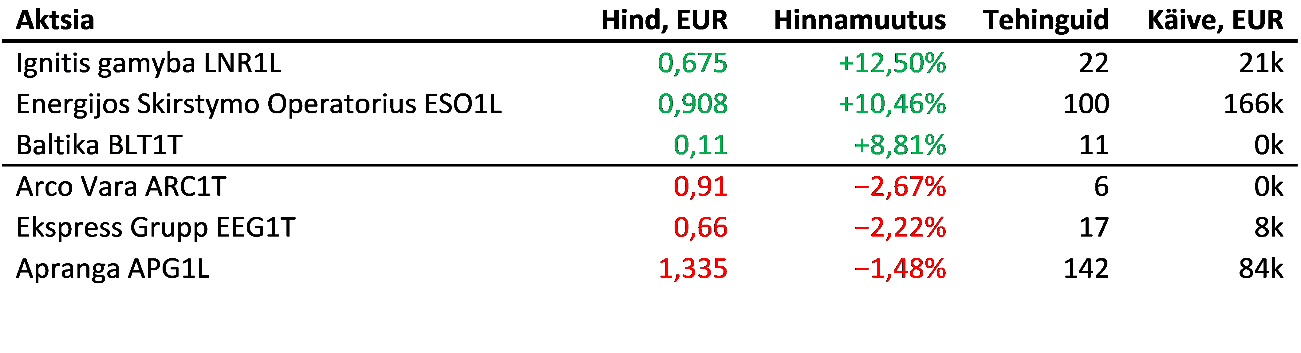 Suurimad tõusjad ja langejad olid: