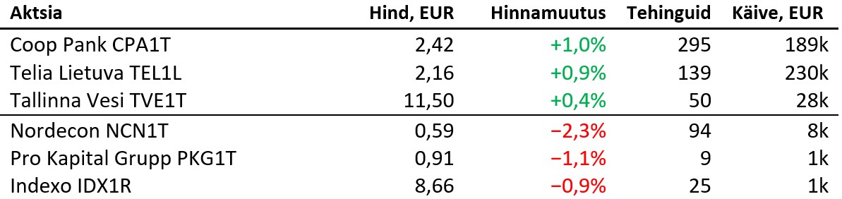 Sektoritest oli liikumine vastandlik - kommunikatsiooniteenused, tervishoid ja kommunaalteenused näitasid nõrkust, samas kui energia, finantssektor ja materjalisektor liikusid üles. Üksikaktsiatest langesid Meta, Tesla ja Alphabet, samal ajal kui JPMorgan tõusis üle 2%.
