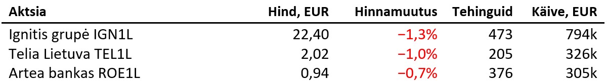 Balti põhinimekirjas tehti teisipäeval 3518 tehingut ning käive oli 2,557 miljonit eurot, millest Tallinna börsi käive moodustas 889 tuhat eurot ning Vilniuse börsi käive 1,643 miljonit eurot. Tehinguid tehti vastavalt 1737 ning 1634.