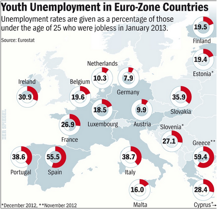 Der Spiegel kirjutab, kuidas Kreeka noorte tööpuuduse kasv veebruaris 64,2%-ni on valitsused kogu Euroopas pannud rohkem mõtlema, kuidas noorte tööpuuduse probleemi leevendada, kuigi juba praegu nimetatakse neid noori kadunud põlvkonnaks. Samas ollakse pakutud lahenduste osas üsna skeptilised ning pigem nähakse, et poliitikud teevad suuri sõnu, kuid tegusid ei järgne. Näiteks veebruaris eraldas Euroopa Nõukogu noorte tööpuudusega võitlemiseks aastani 2020 täiendavad €6 miljardit, kuid liikmesriikide erimeelsuste tõttu, kuidas raha täpsemalt kasutada, lükkub programmi algus vähemalt 2014. aastasse.