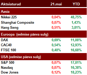 USA futuurid kauplevad 0,1% miinuses ning Euroopa futuurid 0,3% rohelises.