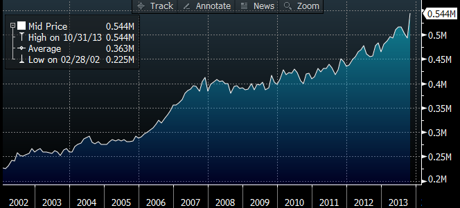 Kui Londonis peaks maja ostmiseks minema, siis keskmiseks küsitavaks hinnaks oli oktoobris 544232 naela, mis märgib 10% kasvu aastatagusega võrreldes. Mujal Suurbritannias oli tõus oluliselt tagasihoidlikum 2,8% oktoobris (252418 naela peale). Suur osa rahast voolab sisse välisinvestoritelt, kes loodavad hinnatõusust osa saada, samal ajal on oma abistava käe ulatanud ka valitsus, kes on otsustanud miljardite naeltega finantseerida hüpoteeklaenu programmi.