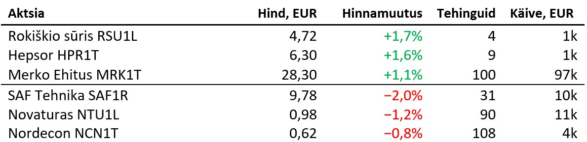 Suuremad tõusjad ja langejad olid:
