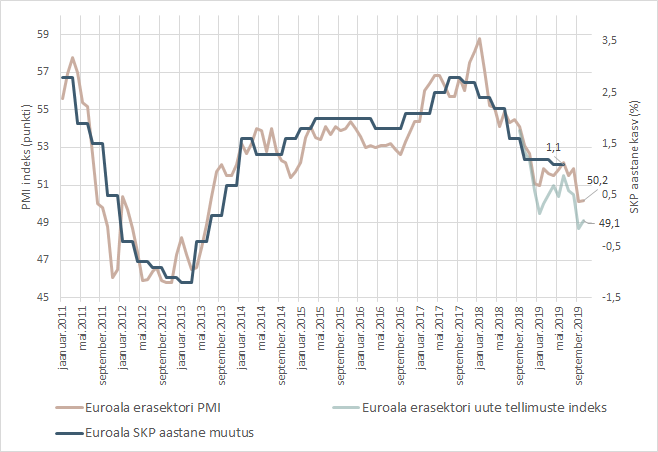 Euroala kasv jätkus PMIde kohaselt oktoobris stabiilsena madalal tasemel