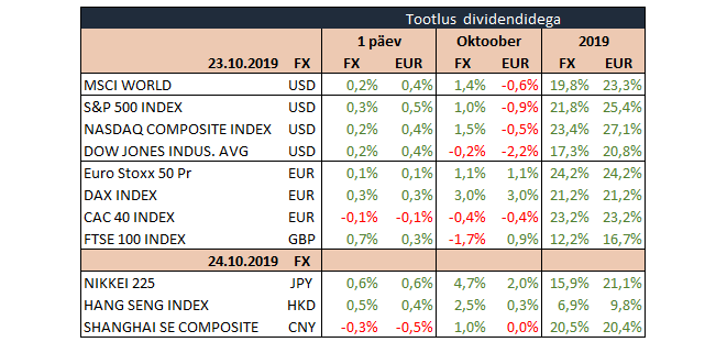 Majandusuudiste osas on tänane päev juba märksa rikkalikum. Esiteks selguvad nii euroala kui ka Ühendriikide erasektori oktoobri esmased aktiivsusnäitajad ning lisaks langetavad Rootsi, Norra ja Euroopa Keskpank intressimäära otsuse, mis ei tohiks kusagil tuua muutust praegustesse määradesse. Mario Draghi jaoks jääb tänane pressikonverents viimaseks, kuna novembrist annab teatepulga üle Christine Lagardile.
