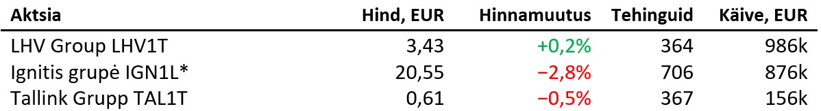 Aasia aktsiaturud kauplesid öösel erisuunaliselt, kerkides Jaapanis 0,3%, Hongkongis 1,1% ja Hiinas 0,8%, kuid langedes Lõuna-Koreas 0,4% ja Austraalias 0,9%. Brenti toornafta kallines 0,1% 67,7 dollarile, Bitcoin langes 0,4% 112 627 dollarile ning Ethereum kaotas 0,7%, kaubeldes 4181 dollaril. EUR/USD nõrgenes 0,2% 1,1788 dollarile ja unts kulda maksis 3771 dollarit (+0,8%).