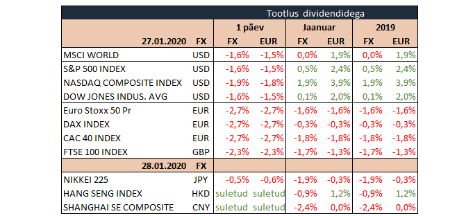 Hirm viiruse leviku pärast andis põhjuse võtta osa kasumist laualt ära ning pakkuda sellega veidi jahutust oktoobrist vaid ühes suunas liikunud Ühendriikide aktsiaturule. S&P 500 indeks sulgus 1,6% madalamal, Nasdaq pidi leppima 1,9% kaotusega ja Russell 2000 indeks suutis päeva põhjadest veidi kosuda, vähendades langust 1,1% peale. Euroopas võtsid indeksid järele Wall Streeti reedesele taganemisele ning lõpetasid üle kahe protsendise langusega.