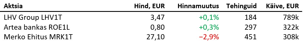 Aasia aktsiaturud kauplesid öösel rohelises: Hang Seng lisas 1,9%, Kospi 1,5%, Shangai Composite 0,9% ja ASX200 0,8%. Jaapananis vähendati riske, mis tingis Nikkei 0,9% languse. Brenti toornafta odavnes 0,8% 68,7 dollarile, Bitcoin kallines 2,1% 111 796 dollarile ning Ethereum kerkis 2,5%, kaubeldes 4106 dollaril. EUR/USD tugevnes 0,2% 1,1721 dollarile ja unts kulda maksis 3815 dollarit (+1,5%).