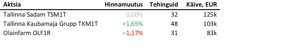 Balti põhinimekirjas tehti teisipäeval 342 tehingut ning käive oli 616 tuhat eurot, millest Tallinna börsi käive moodustas 366 tuhat eurot ning Vilniuse börsi käive 167 tuhat eurot. Tehinguid tehti vastavalt 190 ning 117.