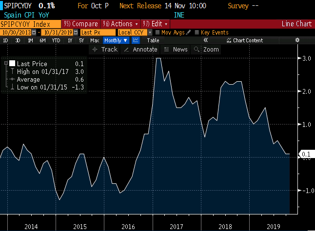 Hispaania inflatsioon püsis oktoobris 0,1% peal, osutudes marginaalselt kõrgemaks oodatud 0,0%st