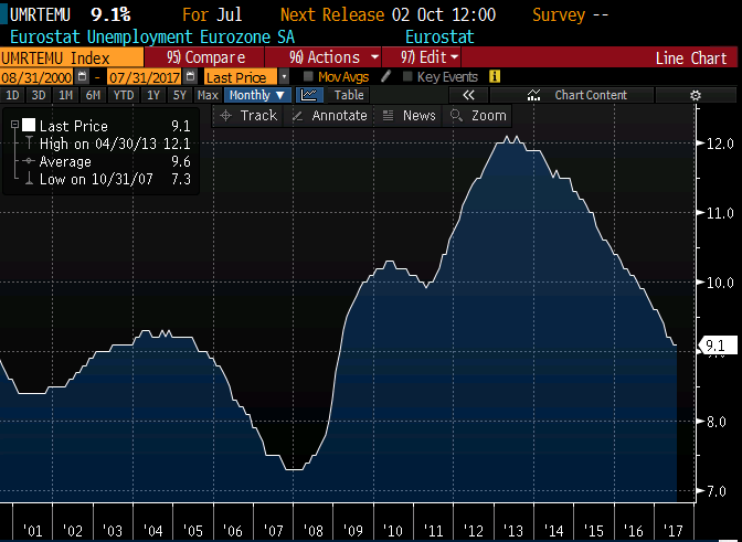 Eurotsooni töötuse määr püsis juulis 9,1% peal