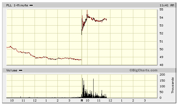 PLL tekitas täna turuosalistes küllaga huvi,aga paraku osutus aktsia mittekaubeldavaks. PLL avanes $52 kandist ehk ca 7% ülevalt ning liikus kiirelt $54 alla. Hetkeks tuli uuesti tagasi $53 juurde, käis ära ka $54,40 peal ning hetkel kaupleb $54 kandis ehk ligi 11% plusspoolel. Aktsia oli eelturul saadaval ka $51 kandis, aga kokkuvõtteks võib öelda, et aktsia avanes siiski liiga kõrgelt.