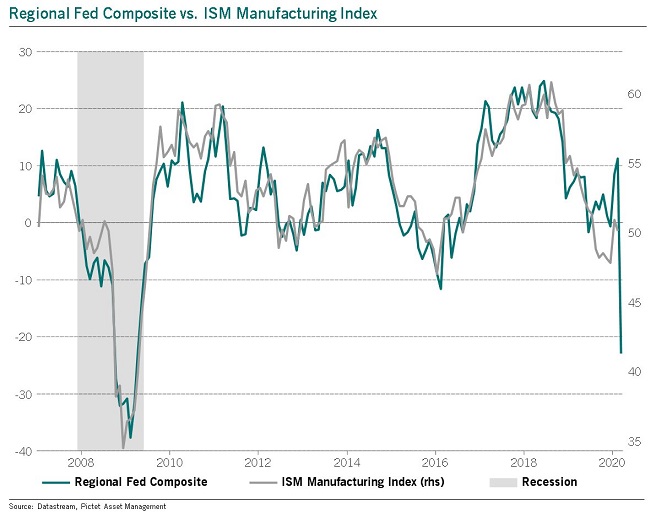 Siiani avaldatud USA viie erineva regiooni töötleva tööstuse küsitlused viitavad sellele, et üleriigiline näitaja võib veebruarikuu 50,1 punkti pealt langeda märtsis 40 punkti lähedale, mis oleks madalaim tase alates eelmisest finantskriisist.