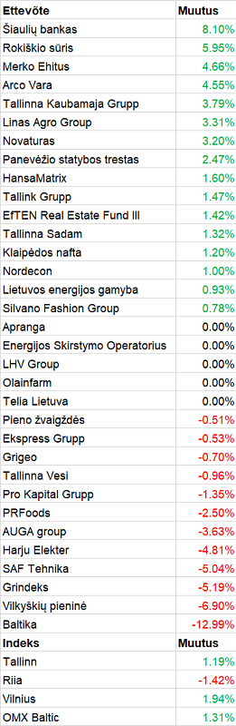 SAB1L tõusu toetasid neljapäeval avaldatud tulemused, mis näitasid puhaskasumi mullust +64 kasvu. Nii BLT1T, GRD1R kui ka VLP1L languse taga olid negatiivsed tulemused.