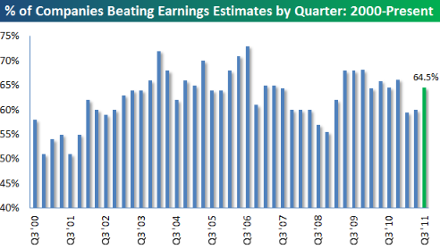 Kui vaadata, kuidas läheb USA ettevõtetel käimasoleval tulemuste hooajal, siis 64,5% ettevõtetest on suutnud näidata oodatust paremat kasuminumbrit. See on kõrgem näitaja kui kahel eelneval tulemuste hooajal. Käibe osas seevastu on ootusi ületanud 62% ettevõtetest, mis on madalaim näitaja alates 2009. aasta märtsist.
