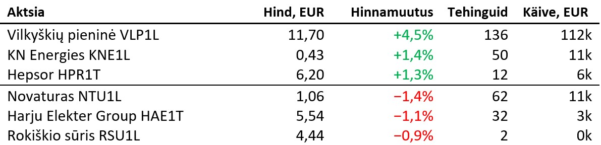 Suuremad tõusjad ja langejad olid: